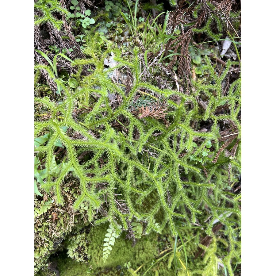 - ヒカゲノカズラは、山野に自生する多年草で、名称は、「日蔭(ひかげ)」の「葛(かずら)」に由来するとされます。その名の通り、日蔭の地面を這うツタ状のシダ植物で、神話の中で天宇受売命(アメノウズメノミコト)が天岩戸の前で舞いをした際に身に纏ったともいわれ、大嘗祭などの宮中祭祀でも利用されるなど、神話や祭祀に関わりが深い植物です。